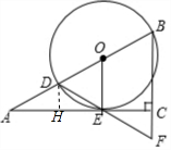 分析 (1)连接OE,如图,利用切线的性质得∠OEA=90°,则∠AOE=∠B=60°,于是可判断△ODE为等边三角形,所以∠ODE=60°,所以△BDF是等边三角形;