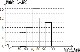 (2)由于测试成绩不低于80分为优秀,则第4、5组的人数为优秀,所以用第4、5组的频数和除以50即可得到本次测试的优秀率;