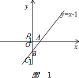 解答 解:(1)当y=0时,x-1=0,解得x=1,即A(1,0);