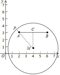 µ±µãPÔÚÏß¶ÎABµÄÉÏ·½Ê±£¬ÇÒµ½µãAµÄ¾àÀëÊÇ1ʱ£¬Èçͼ£¬¹ýM×÷MC¡ÍAB£¬