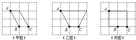 如图,方格纸中有三个点A,B,C,要求作一个四边形使这三个点在这个四边形的边(包括顶点)上,且四边形的顶点在方格的顶点上.