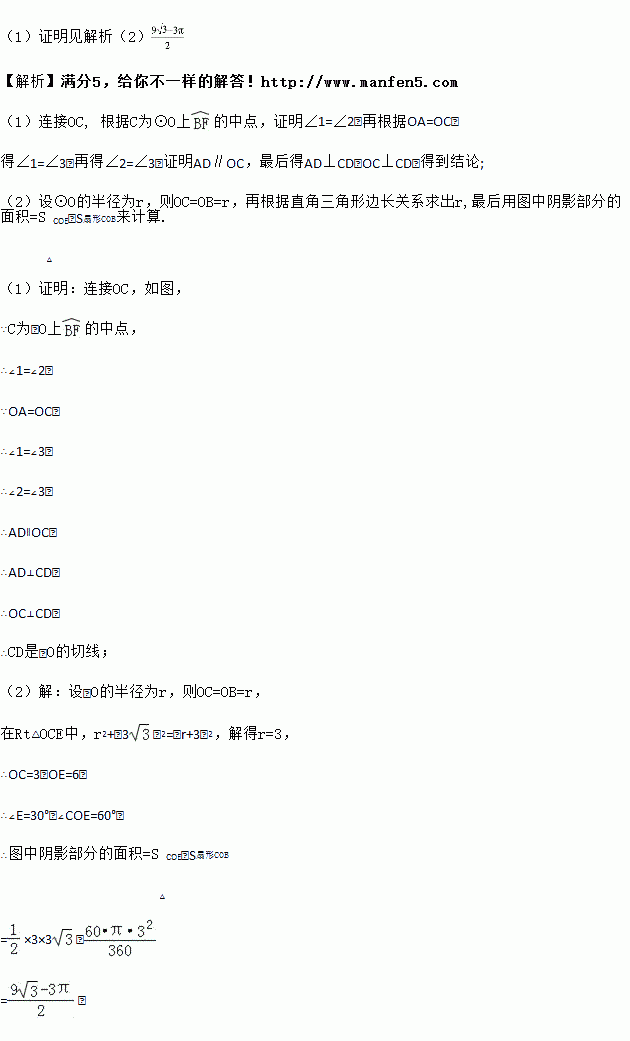 (1)求证:CD是⊙O的切线;