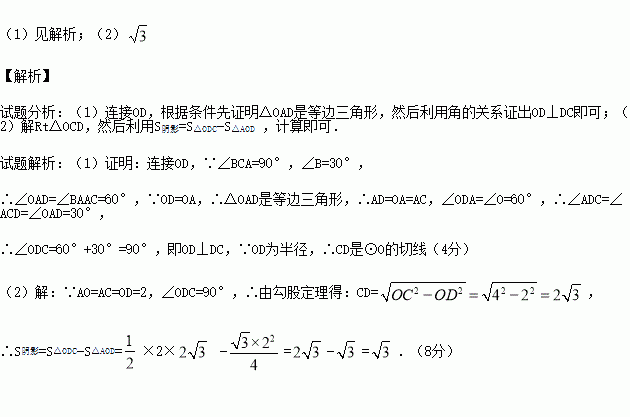如图,已知在R△ABC中,∠B=30°,∠ACB=90°,延长CA到O,使AO=AC,以O为圆心,OA长为半径作⊙O交BA延长线于点D,连接CD.