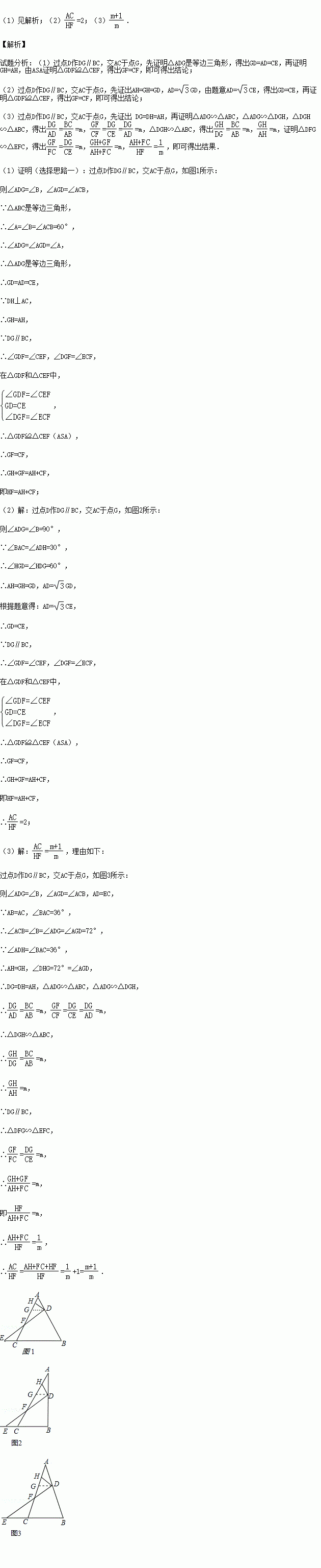 思路一:过点D作DG∥BC,交AC于点G,先证GH=AH,再证GF=CF,从而证得结论成立;