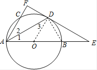 分析 (1)连结OD,由直线EF与⊙O相切于点D,得到OD⊥EF,由同圆的半径相等推出∠1=∠3,由点D为$\widehat{BC}$的中点,得到∠1=∠2,证得∠2=∠3,得到OD∥AF,得出结论AF⊥EF;