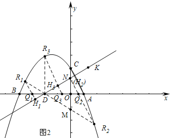(3)分两种情形,①如图2中,当∠DR1H1=∠DR2H2=∠ACO时,利用勾股定理求出点M的坐标,求出直线DM,解方程组求出R1,R2坐标,再求出直线R1H1,R2H2即可解决问题,②当∠DR3H3=∠ACO时,求出R3坐标后求出直线R3H3即可解决问题.