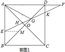 分析 (1)①过点E作EM⊥AB,交BD于点M,则EM∥AF,利用ASA证得△EMG≌△FDG后即可证得GE=GF;