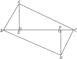 如图所示,点B、E、F、C在同一条直线上,有AE⊥BC.DF⊥BC,垂足分别为点E、F,且AC=DB,BE=CF,求证: