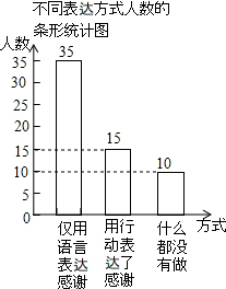 分析 (1)用“用行动表达了感谢”的人数除以其所占的百分比即可求得总人数,从而补全统计图;