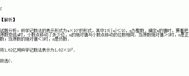 A.1.62×104B.1.62×106C.1.62×108D.0.162×109
