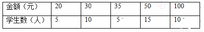 在一次献爱心的捐赠活动中,某班45名同学捐款金额统计如下: