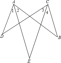 ∵∠1+∠D=∠3+∠E,∠2+∠E=∠4+∠B,