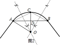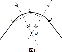 分析 (1)连结AC、BC,分别作AC和BC的垂直平分线,两垂直平分线的交点为点O,如图1;