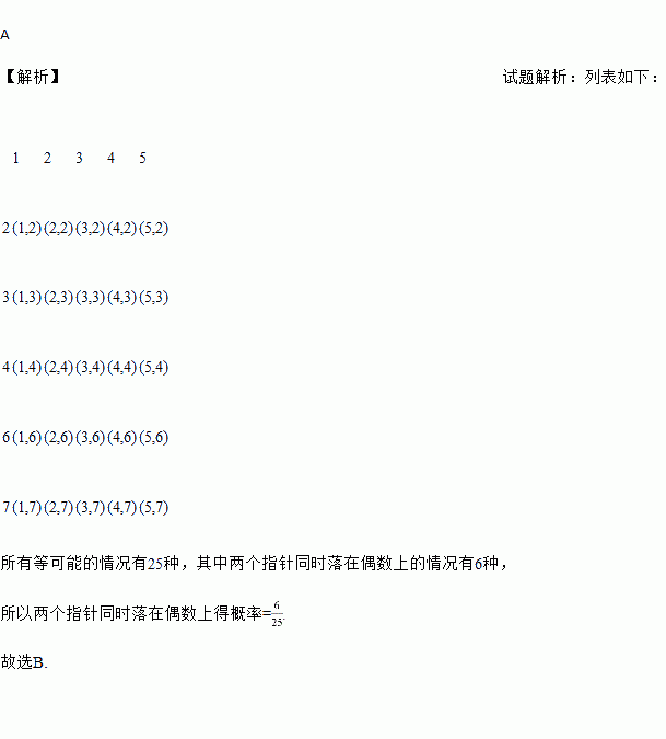 如图的两个圆盘中均有5个数字,同时旋转两个圆盘,指针落在某一个数上的机会均等,那么两个指针同时落在奇数上的概率是( )