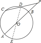 如图,AB为⊙O的直甲径,PD切⊙O于点C,交AB的延长线于D,且CO=CD,则∠PCA=