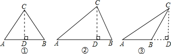 解:分三种情况计算.不妨设AB=10m,过点C作CD⊥AB,垂足为D,