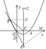 过点E作ME⊥BE交x轴于点M,过点B作BN⊥直线x=2于点N,如图所示.
