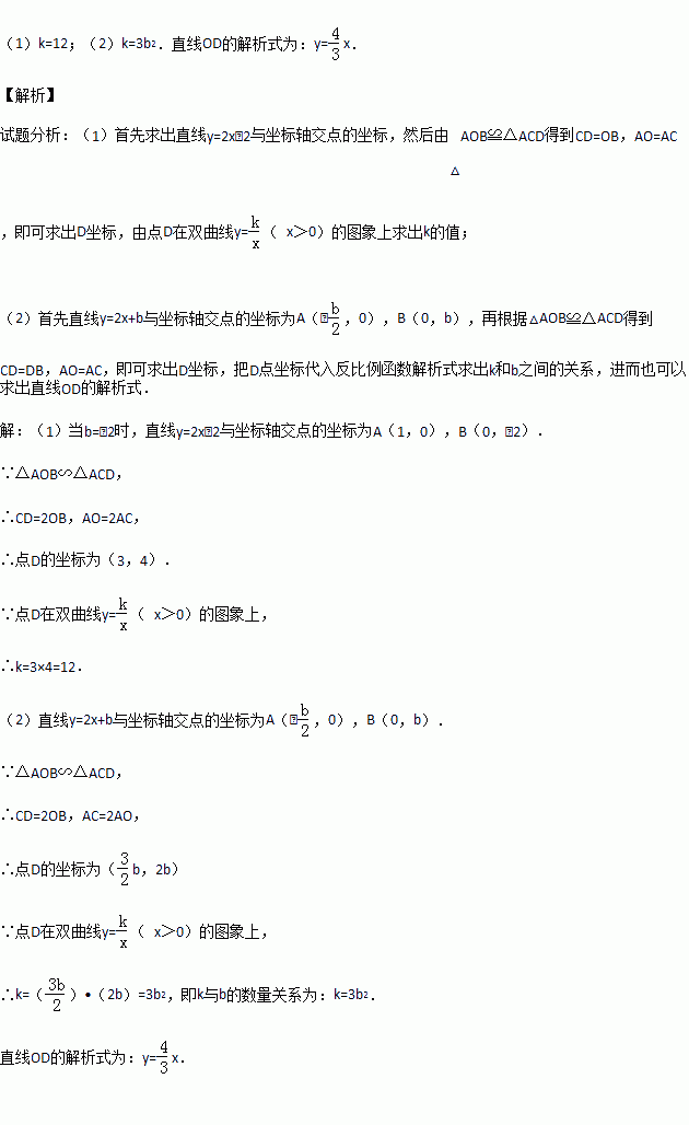 (2)试探究k与b的数量关系,并直接写出直线OD的解析式.
