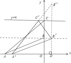 解答 解:如下图所示:当点AB运动到A′B′的位置时,作点B′关于直线y=4的对称点B″,连接A′B″交直线y=4于点C′,即C点恰好运动到C′的位置,
