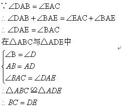 已知:如图,∠B=∠D,∠DAB=∠EAC,AB=AD.求证:BC=DE.
