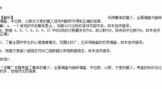 ,则做10次这样的游戏一定会中奖