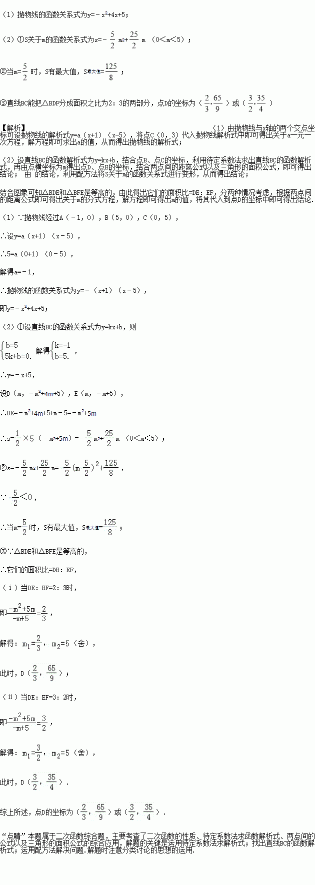 ③直线BC能否把△BDF分成面积之比为2:3的两部分?若能,请求出点D的坐标;若不能,请说明理由.