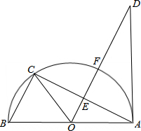 如图,AB是半圆O的直径,点C在半圆O上,过点O作OD∥BC交圆的切线AD于点D,交弦AC于E,交半圆于点F.