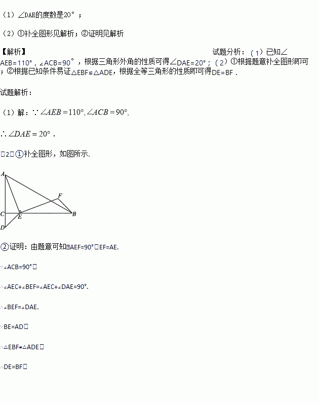(1) 如图1,连接AE,DE,当∠AEB=110°时,求∠DAE的度数;
