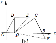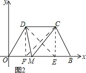 分析 (1)如图1所示;过点C作CE⊥OB,垂足为E.由等腰梯形的性质可知∠CBO=∠DOB=60°,由特殊锐角三角函数可求得EC=$\sqrt{3}$,BE=1,最后点B和点C的坐标可求得CB的解析式;