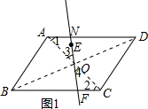 £¨1£©Èçͼ1£¬»·¨£ºÁ¬½ÓAC¡¢BDÏཻÓÚµãO£¬¹ýµãE¡¢O»Ö±Ïß½»BCÓÚµãF£¬½»ADÓÚµãN£¬ÔòÖ±ÏßEFΪËùÇó£»