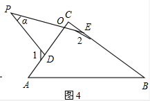 £¨4£©¸ù¾ÝÁÚ²¹½ÇµÃ³ö¡ÏCDP=180¡ã-¡Ï1£¬¡ÏCEO=180¡ã-¡Ï2£¬¸ù¾ÝÈý½ÇÐÎÄڽǺͶ¨ÀíµÃ³ö¡ÏPOD+¡Ï¦Á+¡ÏPDO=¡ÏC+¡ÏCEO+¡ÏCOE=180¡ã£¬Çó³ö¡Ï¦Á+180¡ã-¡Ï1=90¡ã+180¡ã-¡Ï2£¬¼´¿ÉµÃ³ö´ð°¸£®