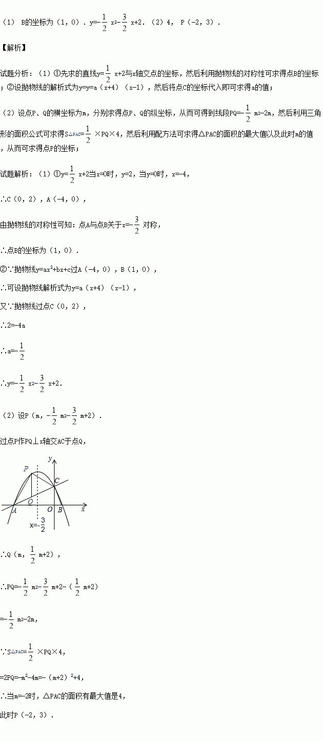 (2)若点P为直线AC上方的抛物线上的一点,连接PA,PC.求△PAC的面积的最大值,并求出此时点P的坐标.