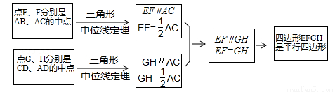在数学课上,老师请同学思考如下问题:如图1,我们把一个四边形ABCD的四边中点E,F,G,H依次连接起来得到的四边形EFGH是平行四边形吗?