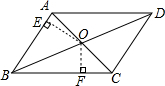 分析 利用平行四边形的对角线相互平分推知OA=OC,则△AOB与△BOC是等底同高的两个三角形,它们的面积相等,所以利用面积法来求点O到BC的距离即可.
