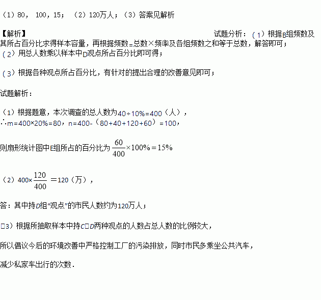 (2)若该市人口约有400万人,请你计算其中持D组“观点”的市民人数;