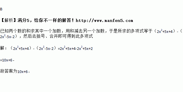 已知有一多项式与(2x2+5x-2)的和为(2x2+5x+4),求此多项式为何?