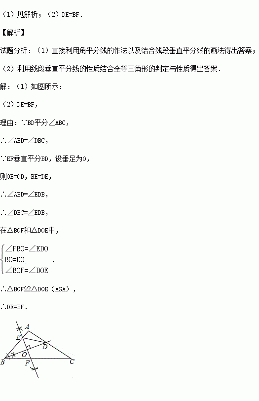 ②作线段BD的垂直平分线分别交AB、BC于点E、F.