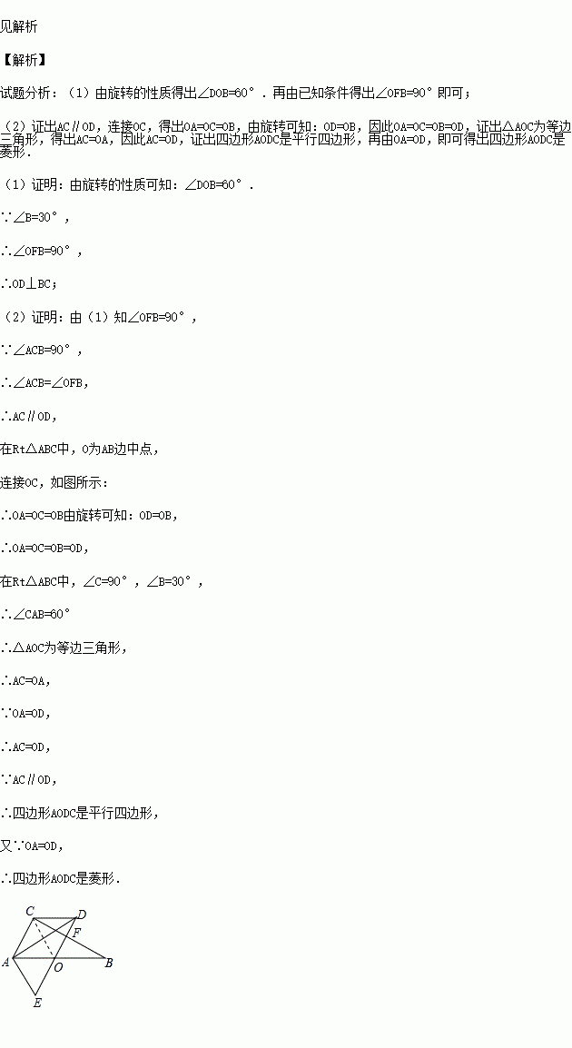 (2015秋•保定期末)如图,已知Rt△ABC中,∠C=90°,∠B=30°,O为AB边中点,将△ABC绕点O逆时针旋转60°至△EDA位置,连接CD.