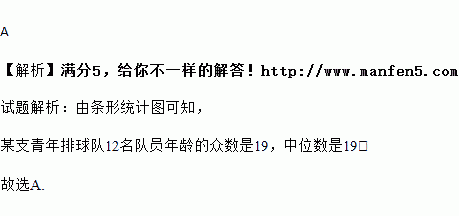 某支青年排球队有12名队员,队员年龄情况如图所示,那么球队队员年龄的众数、中位数分别是( )