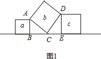 如图1,直线l上有三个正方形a、b、c,其中a和c称为正放置的正方形,b称为斜放置的正方形.如果a和c的面积分别为1和4,那么b的面积为