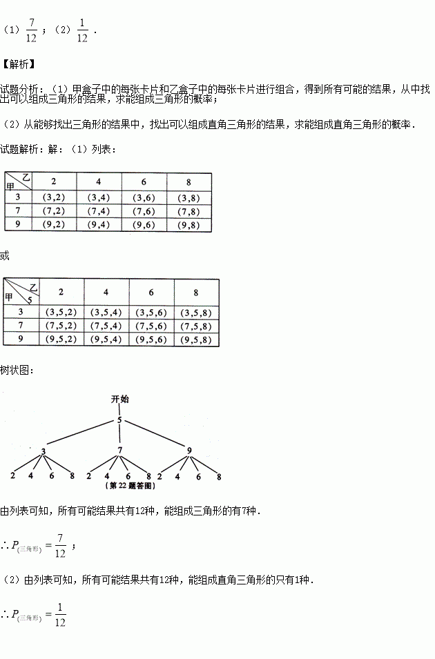 µÄ¿¨Æ¬£®ËùÓп¨Æ¬µÄÐÎ×´¡¢´óС¶¼ÍêÈ«Ïàͬ£®ÏÖËæ»ú´Ó¼×¡¢ÒÒÁ½¸öºÐ×ÓÖи÷È¡³öÒ»ÕÅ¿¨Æ¬£¬ÓëºÐ×ÓÍâµÄ¿¨Æ¬·ÅÔÚÒ»Æð£¬Óÿ¨Æ¬ÉϱêÃ÷µÄÊýÁ¿·Ö±ð×÷ΪһÌõÏ߶εij¤¶È£®