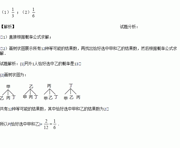 初三(1)班要从甲、乙、丙、丁这4名同学中随机选取2名同学参加学校毕业生代表座谈会,求下列事件的概率.