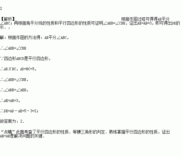 PQ的长为半径作弧,两弧在∠ABC内交于点M,连接BM并延长交AD于点E,则DE的长为_____________.