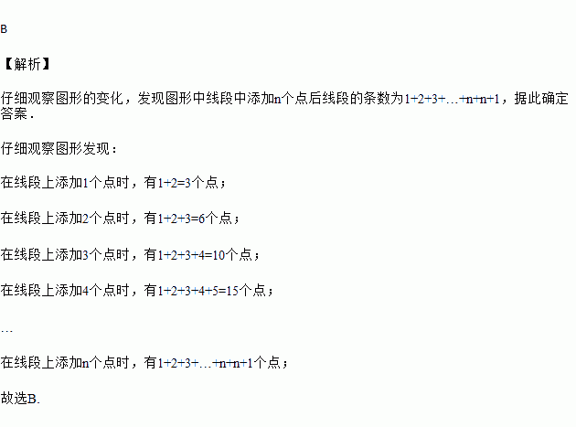若在原线段上添加n个点,则原线段上所有线段总条数为( )