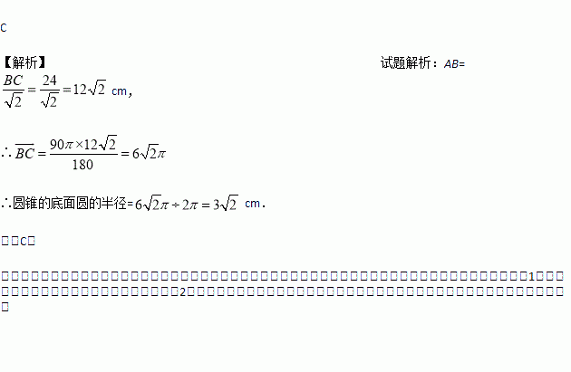 如图,从一块直径为24cm的圆形纸片上剪出一个圆心角为90°的扇形ABC,使点A,B,C在圆周上,将剪下的扇形作为一个圆锥的侧面,则这个圆锥的底面圆的半径是( )