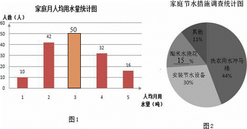 (2)如果全校学生家庭总人数约为3000人,根据这150名同学家庭月人均用水量,估计全校学生家庭月用水总量.![]()