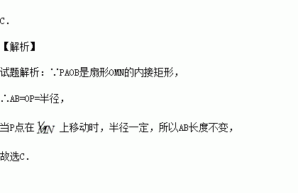 如图,四边形PAOB是扇形OMN的内接矩形,顶点P在