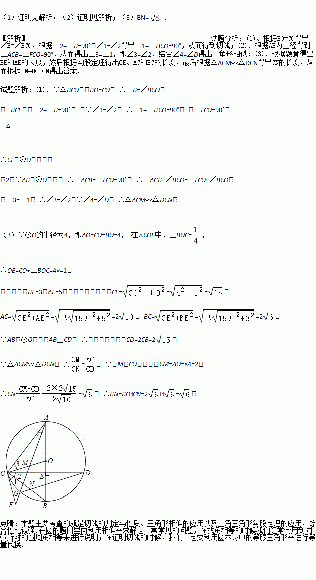(1)求证:CF是⊙O的切线;