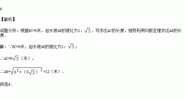 (2015秋•莆田校级期末)河堤横断面如图所示,堤高BC=6米,迎水坡AB的坡比为1: