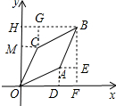 分析 作AD⊥x轴于D,BF⊥x轴于F,AE⊥BF于E,BG⊥y轴于H,CG⊥BH于G,CM⊥Y轴于M,则四边形BHOF是矩形,四边形ADFE是矩形,四边形GHMC是矩形,证明Rt△ABE≌Rt△AOD,得出BE=OD=2,求出BF=3,同理可证:△CBG≌△AOD,得出CG=AD=1,BG=OD=2,得出HM=1,OM=2,即可得出结果.